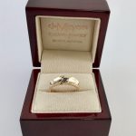 Yogo Sapphire .27tcw with diamonds .05cwt on the side set in 14 kt yellow gold. Would make a great wedding band.