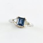 Yogo Sapphire .84ct AA Emerald Cut with .40ctw diamonds white gold ring.